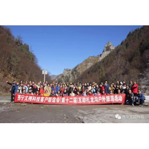 西宁文翔科技2019客户联谊会—互助扎龙沟户外徒步活动 2019年秋未冬初,天气晴朗,阳光明媚。喝一袋暖暖的豆浆,啃着大饼沿着墨绿、金黄的枝叶和草甸交相辉映,像是一幅幅不用调色的天然油画的网红最美公路--扎碾公路,一路欢歌笑语来到扎龙沟。